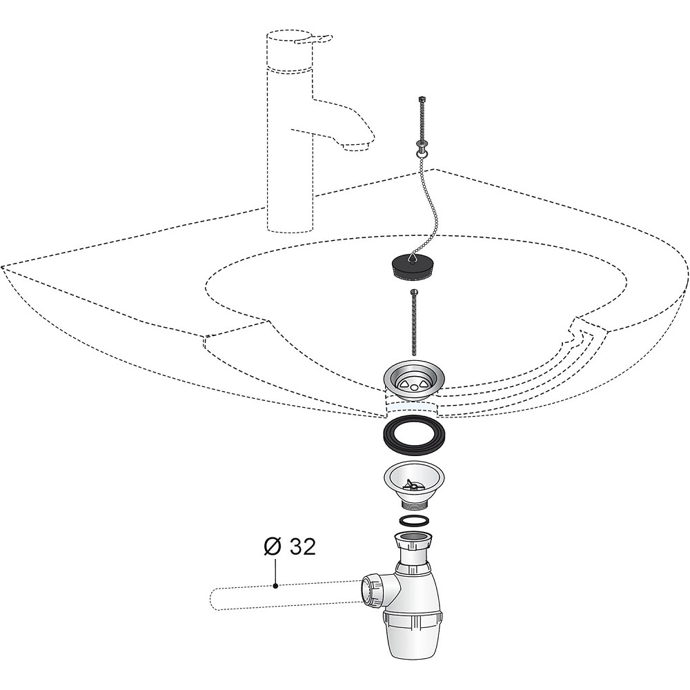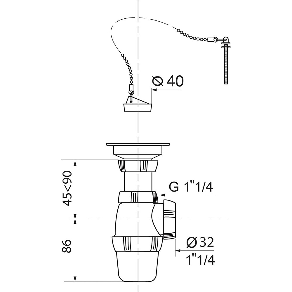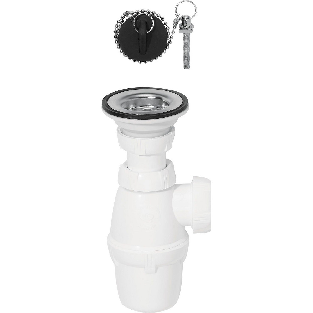 Bonde de lavabo à bouchon + siphon avec chapinette WIRQUIN 30718876 - Marque : WIRQUIN - Référence : 30718876 - Poids : 0.168 kg - Sortie : Ø 32 mm à visser - Entrée : 1"1/4 - Plage de serrage : 0 à 65 mm - Destination : Lavabo - Siphon réglable en hauteur - Bonde à bouchon sans trop-plein - Chaînette : Longueur 250 mm - Couleur : Blanc - EAN : 3375537188161.
