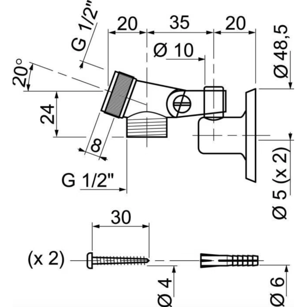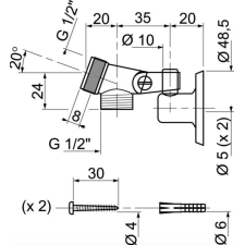 Chape à piton + Bride articulée Wirquin HY447 - Chape à piton et bride en laiton articulée - Matière : Laiton - Finition : Chromée.