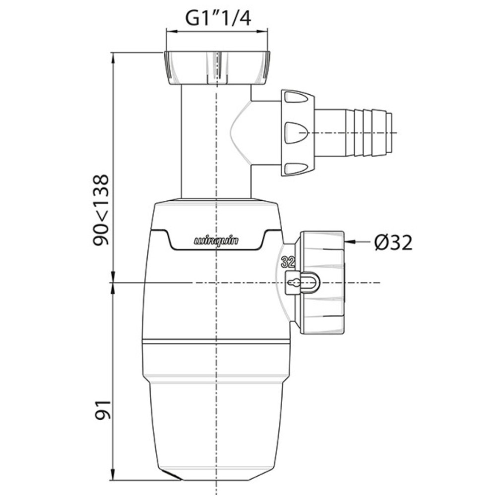 Siphon de lavabo avec prise machine à laver Siphon NF. Réglable en hauteur de 181 à 229 mm. Débit : 57 L/mn. Sortie Ø32 mm, fermeture 1/4 de tour.