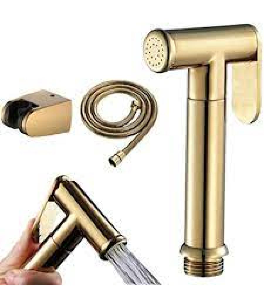 Douchette de WC, flexible et support mural inclus. Couleur: doré.