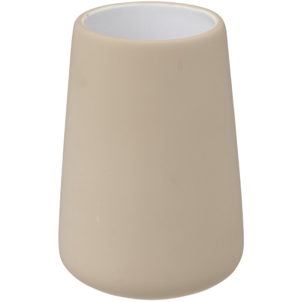 Ce gobelet en céramique Colorama beige naturel affiche des dimensions de Ø 8,3 cm x H 11,8 cm pour un poids de 0,38 kg. Il est fabriqué en grès, avec une finition en peinture glycérophtalique, et est destiné à un usage intérieur. Son “Good Living Score” indique un impact modéré.
