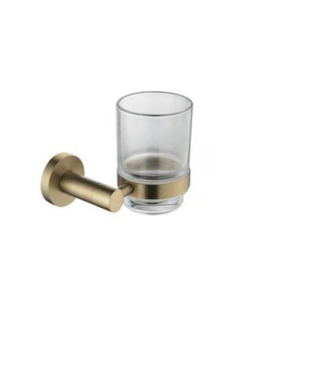 Porte brosse à dent mural finition or - Combine un support métallique robuste et un verre transparent - Permet d'optimiser l'espace autour du lavabo - Garde vos brosses à dents et accessoires bien organisés - Verre amovible pour un nettoyage facile.