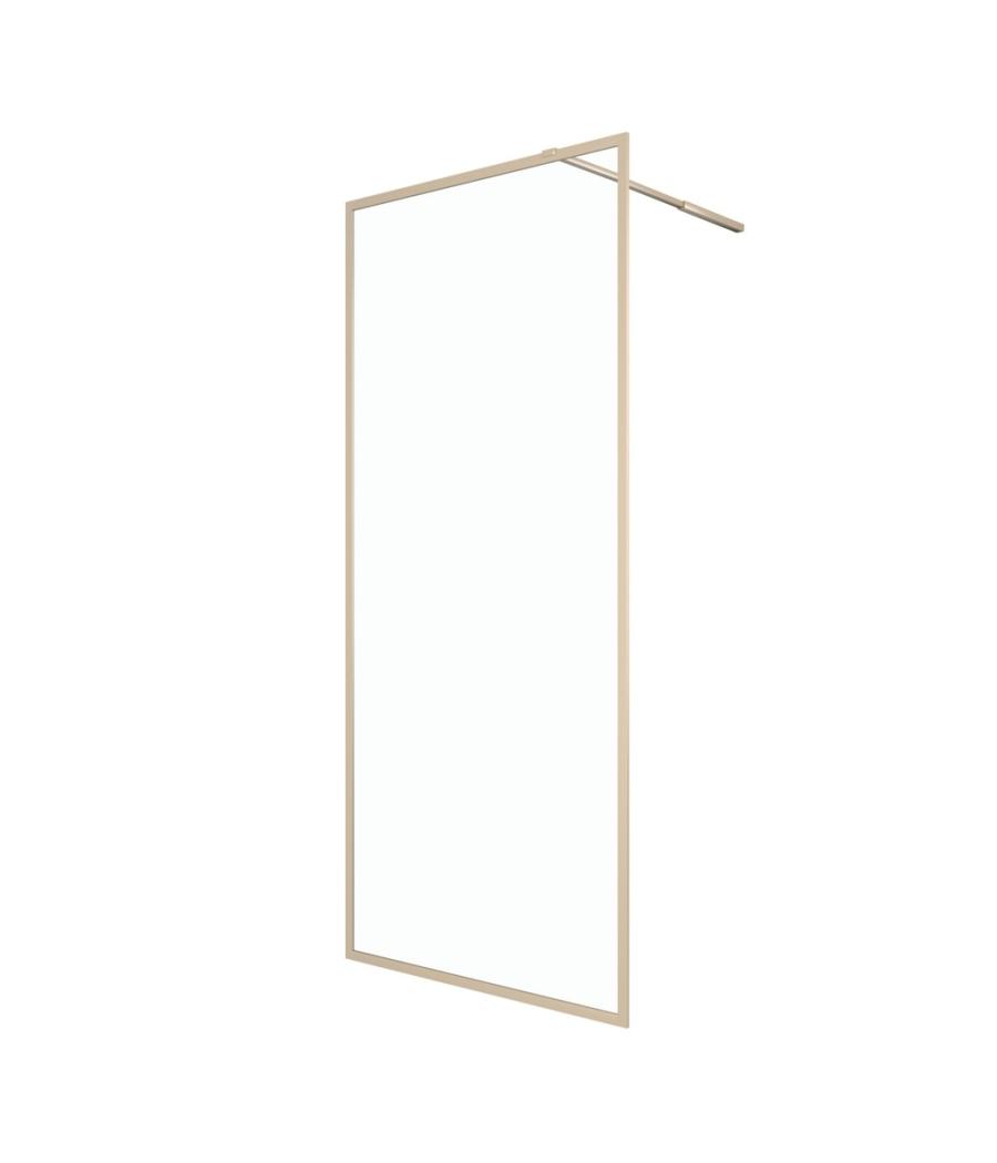Paroi de douche en verre trempé transparent de dimensions 800x1950mm - Structure en aluminium finition or doré brossé - Installation réversible - S'intègrera harmonieusement à différents styles de décoration - Belle idée de déco pour votre salle de bain.