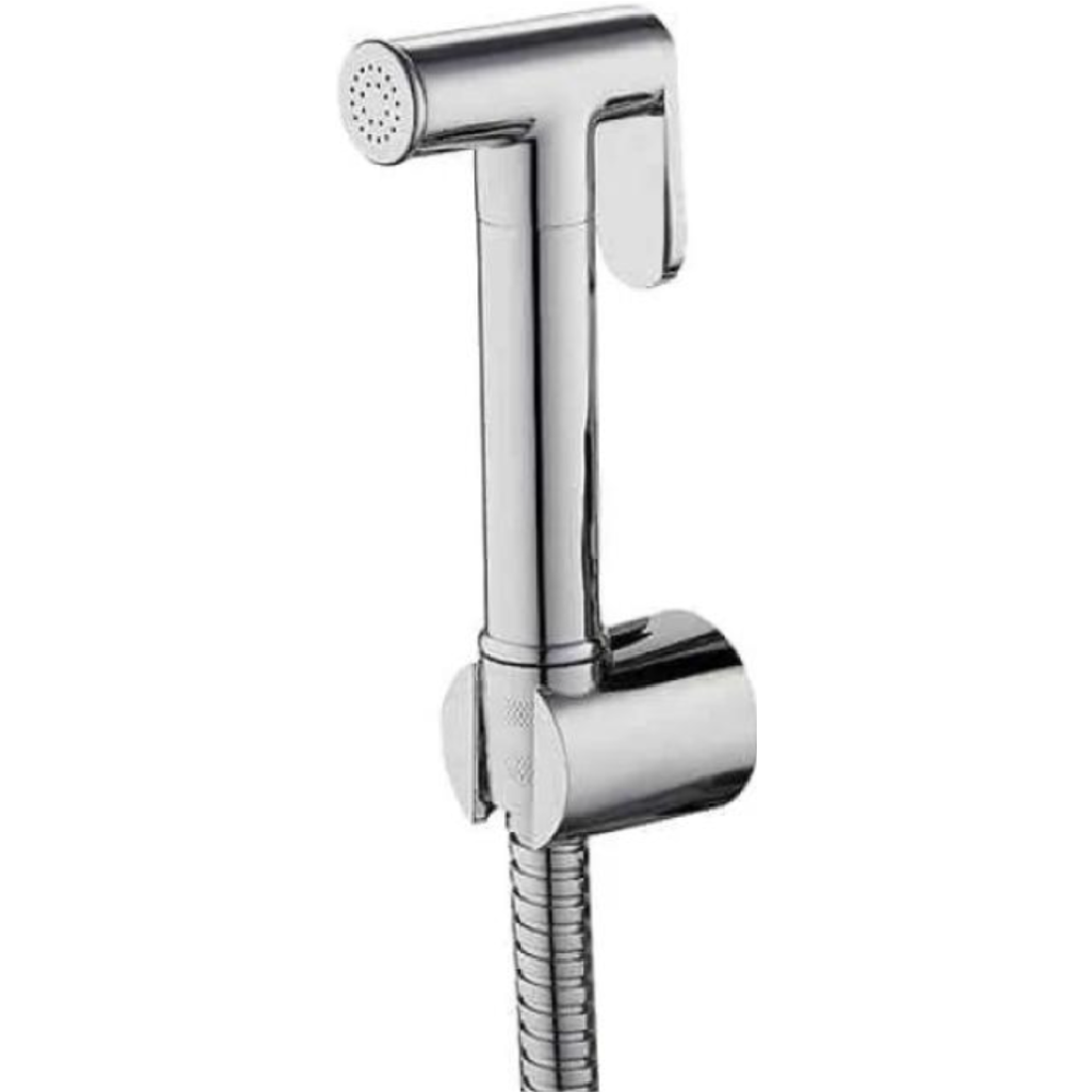 Douchette de WC chromée avec support mural et flexible - Design moderne et ergonomique - Pratique et facile à utiliser - Solution idéale pour l'hygiène intime, le nettoyage des toilettes ou l'entretien de la salle de bain - Dispose d'un levier de commande manuel qui permet un contrôle simple et précis du débit d'eau.