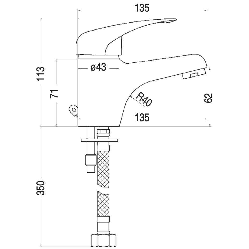 Mitigeur Lavabo NUBE GA3502 - Marque : Grycoter - Type : Mitigeur monocommande pour lavabo - Installation : Monotrou, fixation sur plan de toilette - Finition : Chrome poli, surface résistante à la corrosion - Matériau : Corps en laiton massif - Cartouche : Disque céramique, anti‑fuite - Bec : Bec classique, orientation fixe - Raccordement : Flexibles d’alimentation inclus, raccordement standard (½″ ou équivalent) - Pression de service recommandée : 1 à 5 bars - Entretien : Surface lisse, facile à nettoyer, résistant au calcaire.