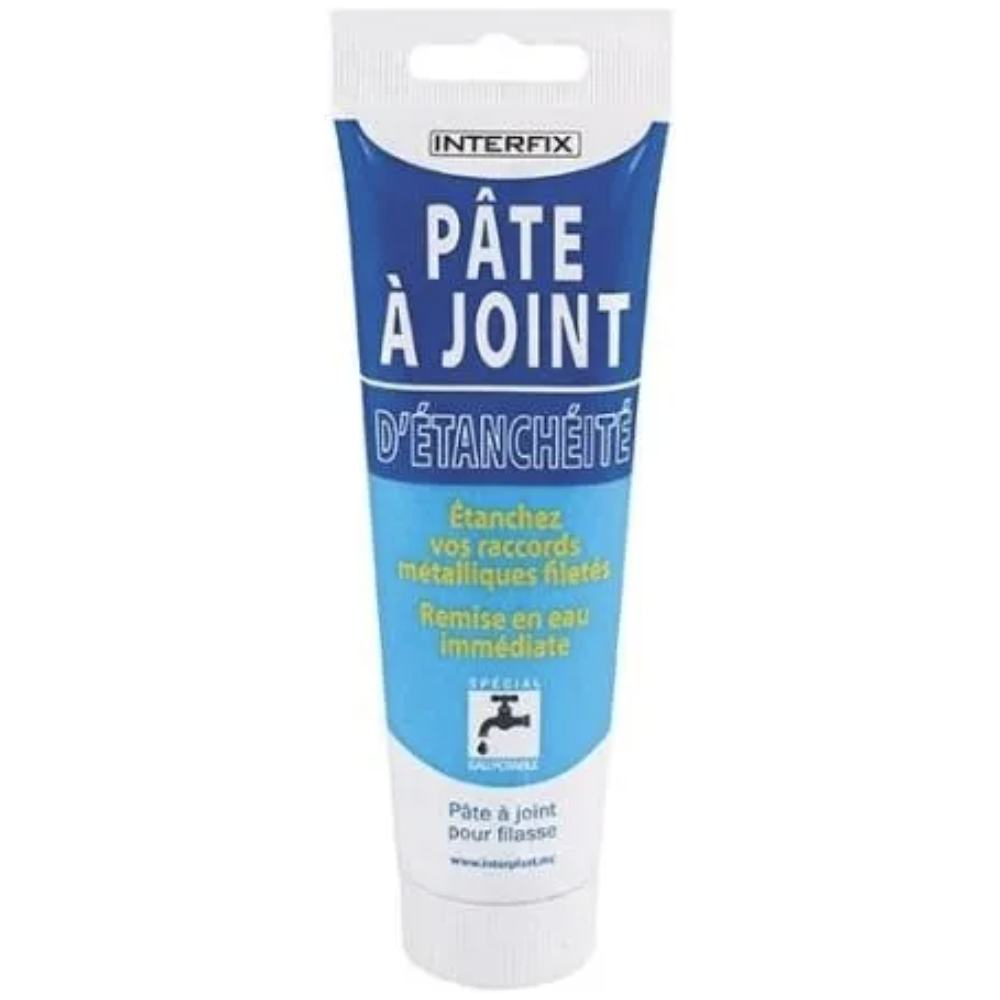 Pâte à joint étanchéité Interfix, 125 ml Interplast – Usage : Étanchéité des raccords métalliques filetés - Norme : Conforme EN 751-2 - Certificat : 17 CLP LY 028 - Complémentaire à la filasse - Contenance : 125 ml - Dimensions : L 0,064 × l 0,038 × H 0,19 m - Poids : 0,125 kg - GTIN : 3396046503368.
