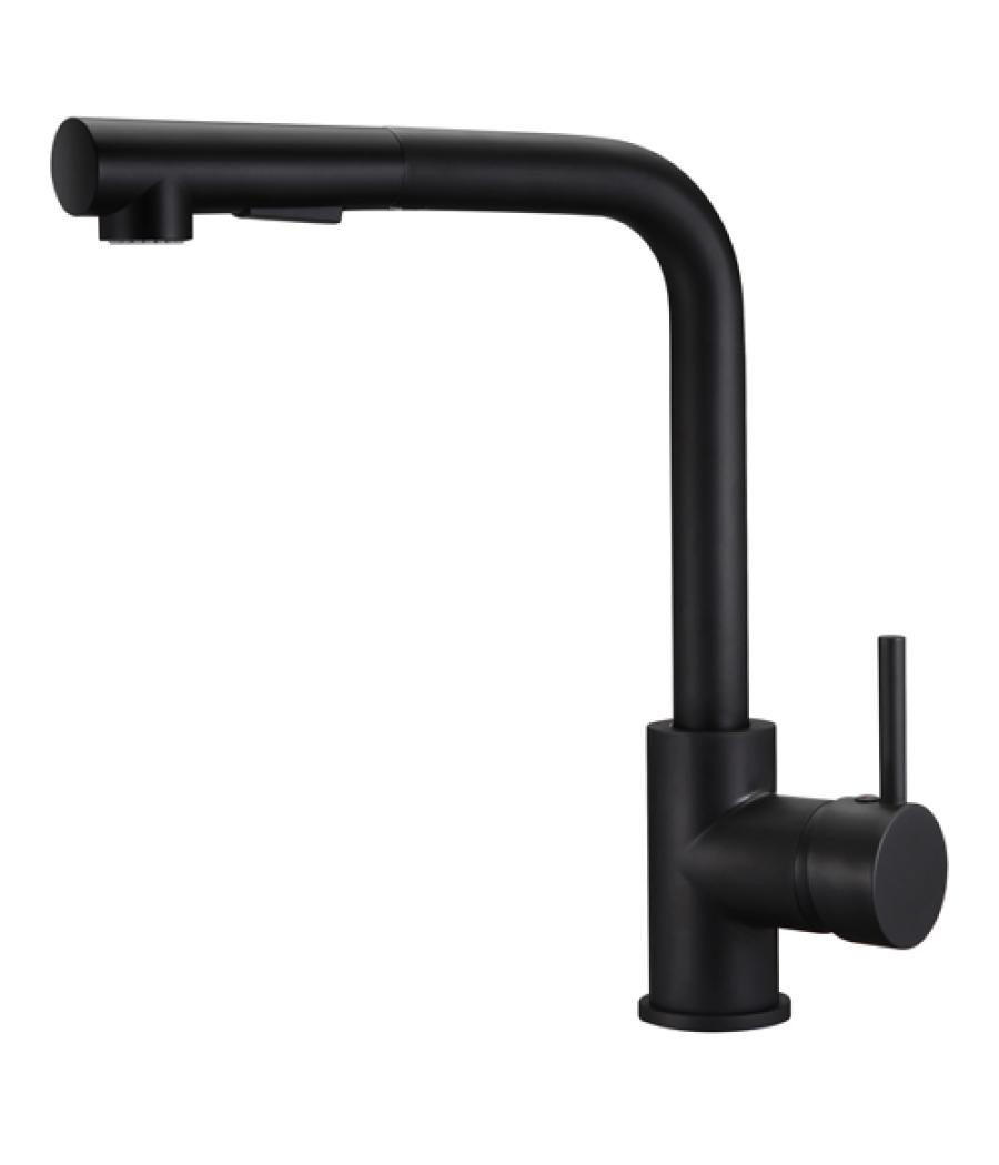 Mitigeur de cuisine noir mat Parfait équilibre entre forme et fonction ; doté d'une douchette intégrée et extractible pour faciliter le nettoyage - Dispose d'un bec haut arrondi - Bénéficie d'un levier monocommande ergonomique qui permet de contrôler la température et le débit de l'eau d'un seul geste - Fabriqué avec cartouche céramique durable - Installation simple et rapide.