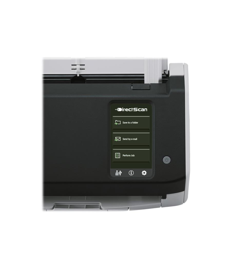 | Fonctions du scanner | Suppression de couleur, accentuation de l'image, erreur de diffusion, Capteur multi-alimentation Ultrasonic, détection automatique des couleurs, tramage, binarisation automatique (Advanced DTC), sortie d'image multiple, rotation automatique de documents, numérisation directe vers le nuage, fusion d'image, Deskew, Blank Page Detection, contrôle des images fractionnées, détramage, écran tactile TFT 4,3 pouces, retrait des demi-teintes, Barcode Recognition, suppression d'arrière-plan, vertical streaks reduction, seuil fixe, extraction de caractères, recadrage des onglets d'index, SDTC, sortie sRGB |