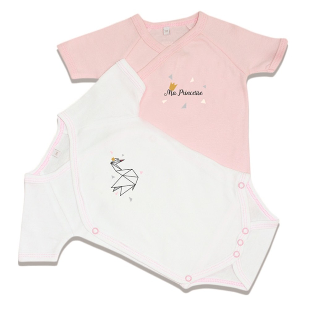Bodies manches courtes 2 pièces, princesse et signe, couleurs : blanc, rose.