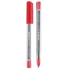 Stylo à bille et capuchon avec clip réversible. Couleur du capuchon/bouton de corps et couleur d'encre rouge. Épaisseur de trait moyenne (M) environ 0.5 mm. Corps transparent pour un niveau d´encre visible. La pointe en acier inoxydable résistante à l'usure garantit l'utilisation de tout le volume d'encre, écrit proprement et sans tâche.