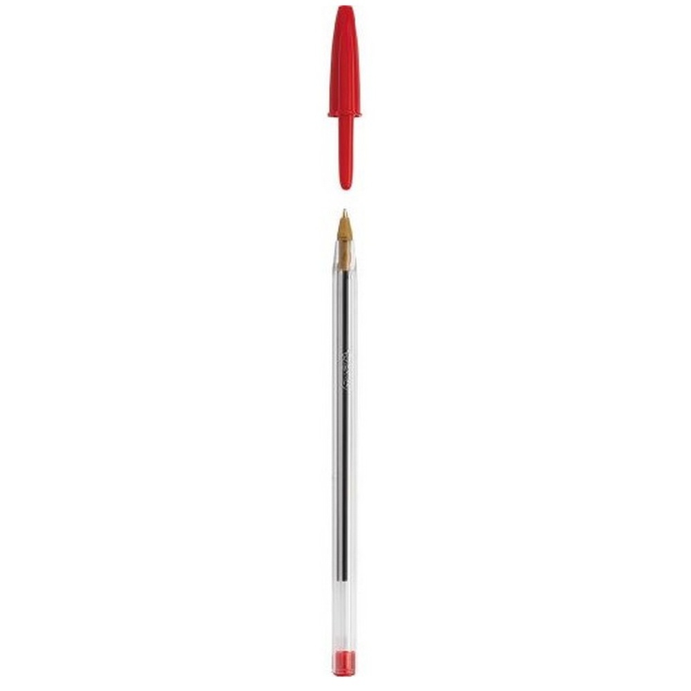 Stylo à bille avec pointe médium de 0,5 mm - Corps en plastique transparent - Capuchon en plastique de la couleur de l'encre - Offre un confort d'écriture - Couleur: rouge.