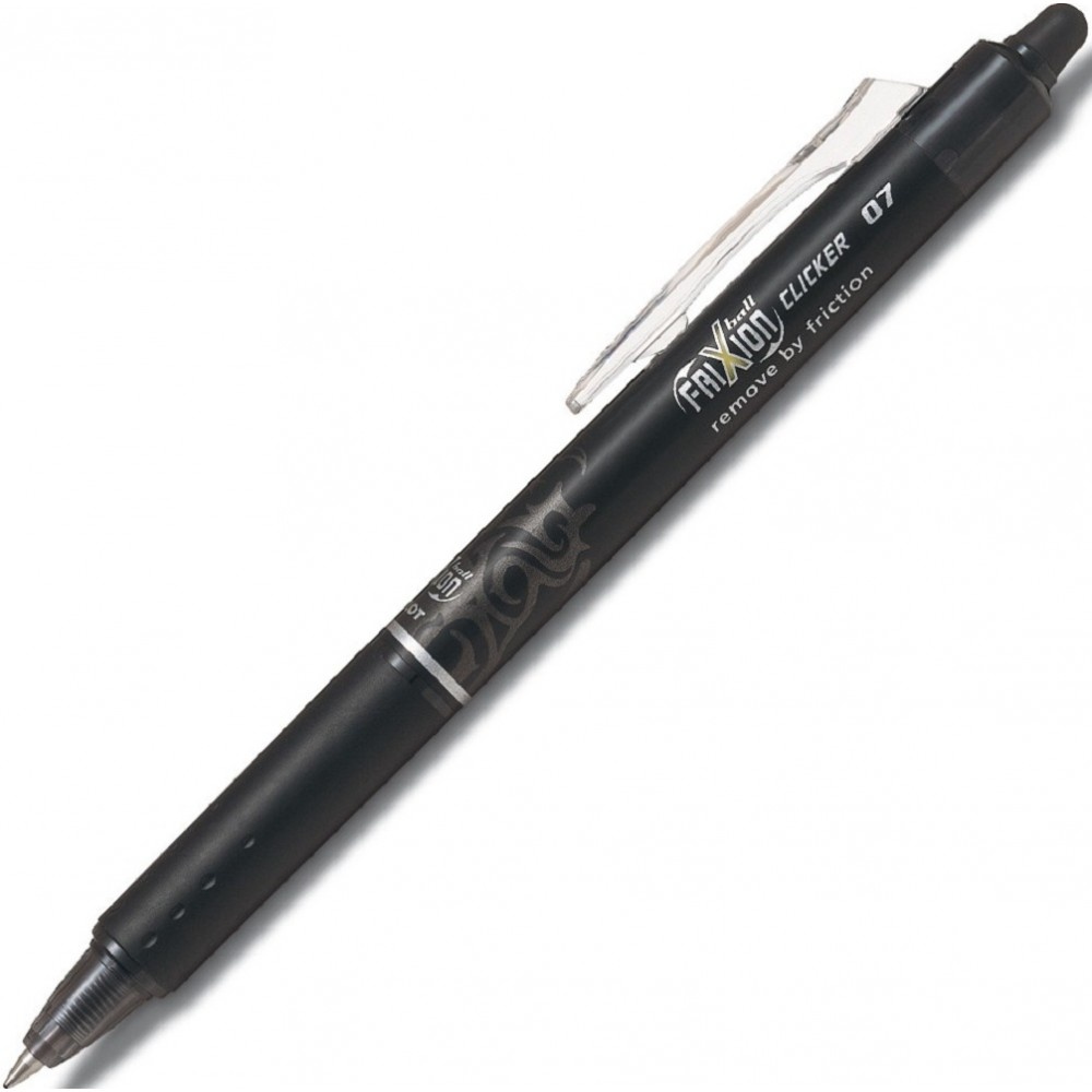 Le stylo roller Frixion Clicker vous permettra de corriger et réecrire, puis recommencer durant toute l'année ! - Les caractéristiques du stylo roller Frixion Clicker : - Couleur : noir - Stylo rétractable avec agrafe en plastique - Encre effaçable - Pointe moyenne, trait fluide de 0,7mm.