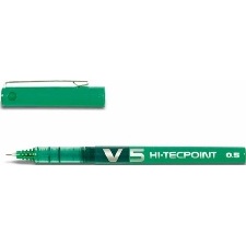 Stylo roller hi-tecpoint v5 vert - Couleur de l'encre: vert - Pointe aiguille - Non rechargeable - Régulateur d'encre - Niveau d'encre visible - Trait : 0,5 mm.
