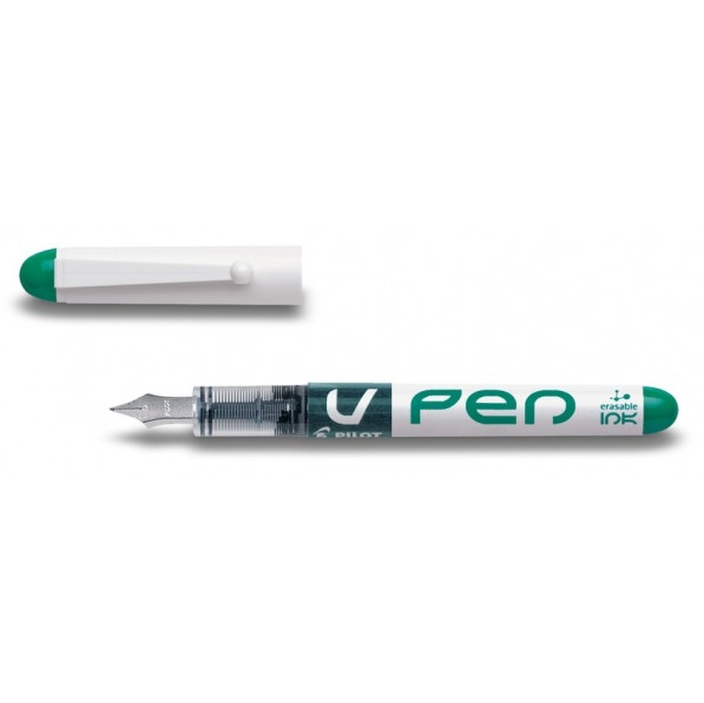 Stylo plume V-Pen - Pointe acier 0.4 mm - Encre liquide effaçable - Niveau d'encre visible - Régulateur de débit - Couleur : Noir - Stylo plume V-Pen Noir effaçable. Plume acier. Non rechargeable. Encre effaçable. Corps plastique blanc rond. Régulateur d'encre. Niveau d'encre visible