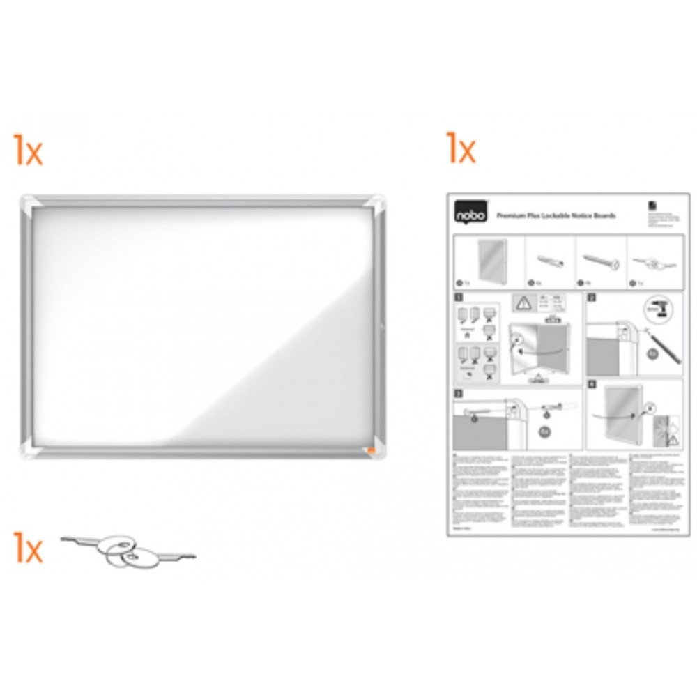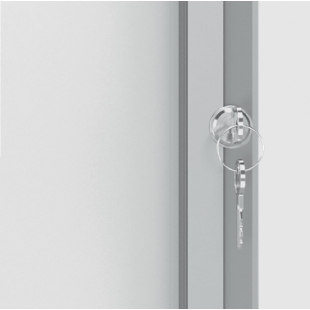 Vitrine d'affichage magnétique avec porte battante en verre sécurité et serrure sur le côté. Avec cadre moderne et élégant en aluminium et fixation murale par les coins. Excellente surface magnétique pour afficher vos communications en toute sécurité. Format : 9 feuilles A4.