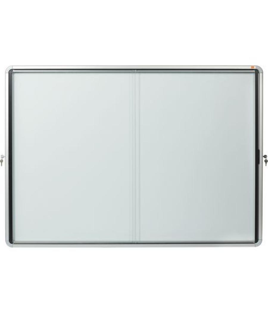 Vitrine d'affichage magnétique avec porte battante en verre sécurité et serrure sur le côté. Avec cadre moderne et élégant en aluminium et fixation murale par les coins. Excellente surface magnétique pour afficher vos communications en toute sécurité. Format : 9 feuilles A4.