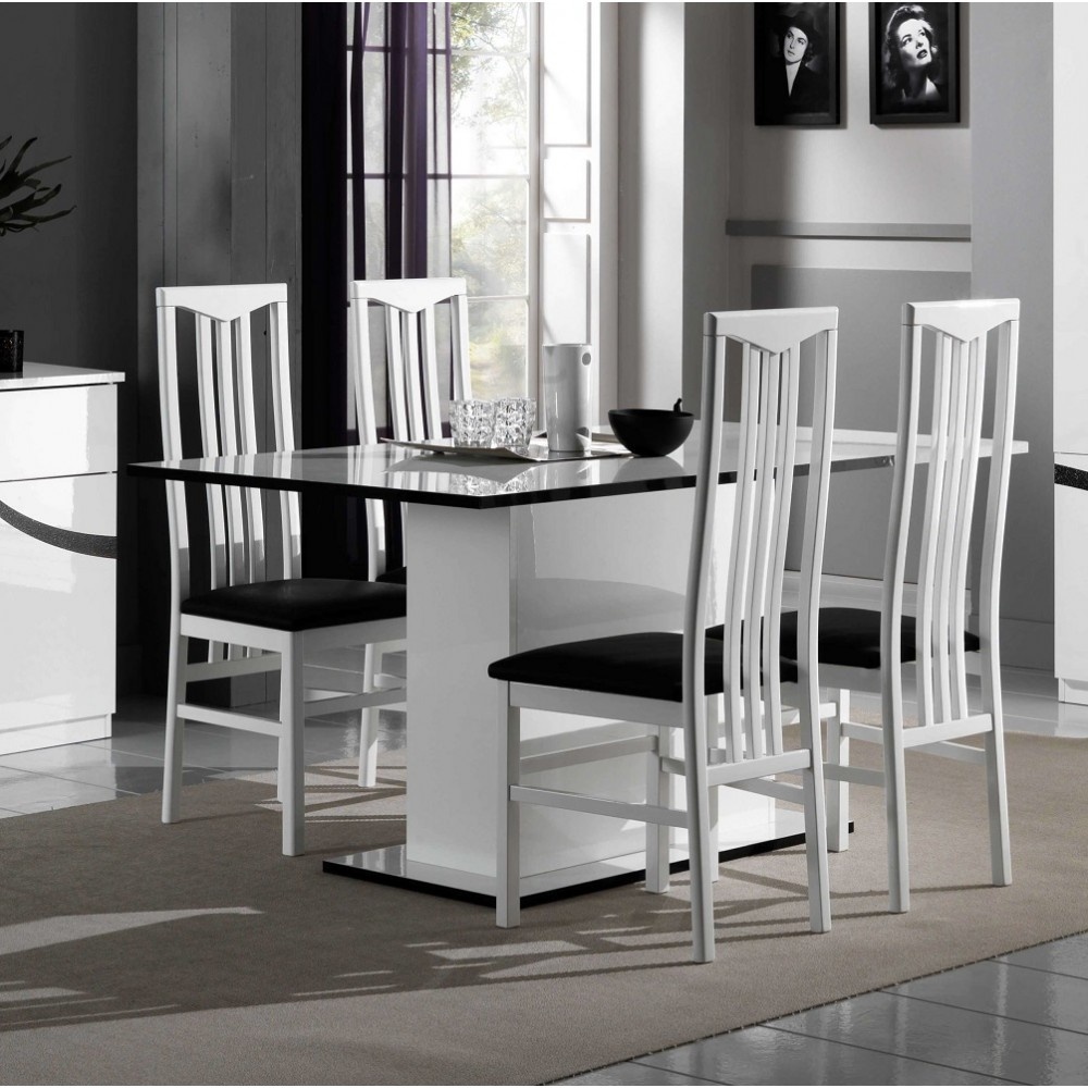 Table MILANO blanc laqué - Table de repas avec pied fixe. Structure en panneau de particules épaisseur 18 mm laqué blanc brillant avec sérigraphie. Dimensions: 160 × 90 × 77 cm. Chaises non fournies.