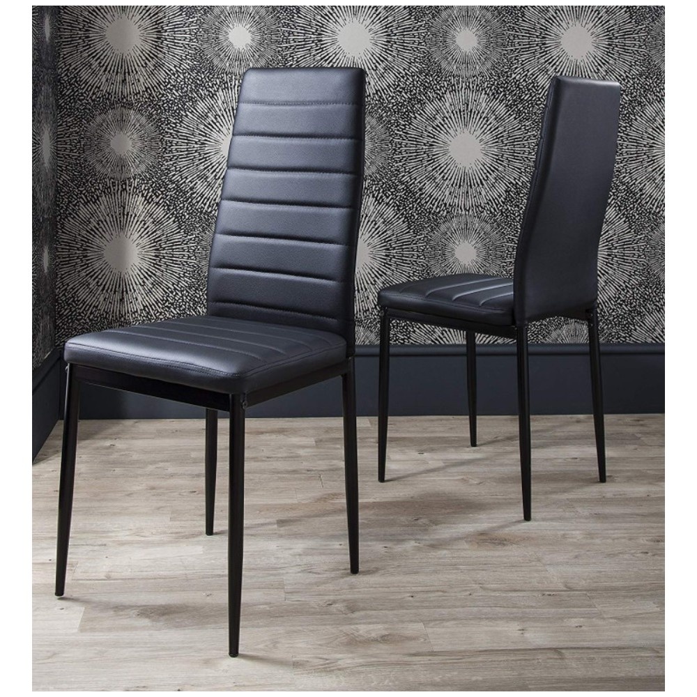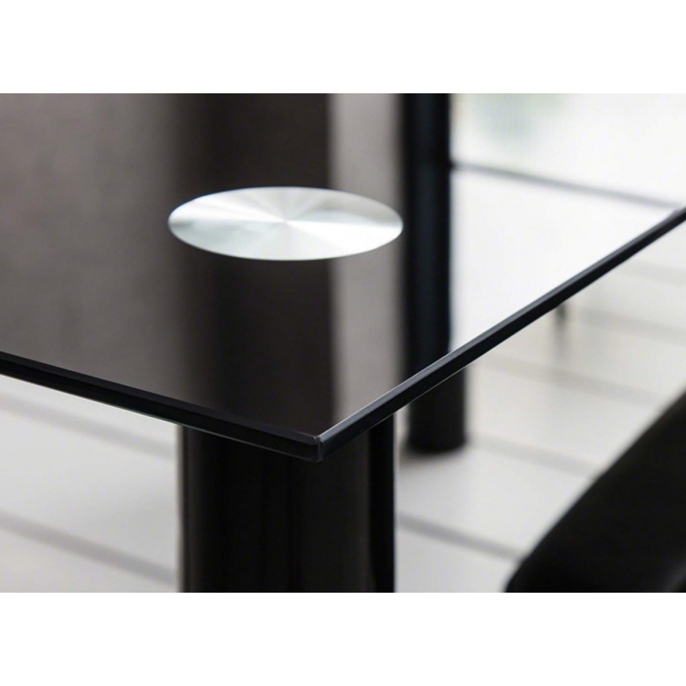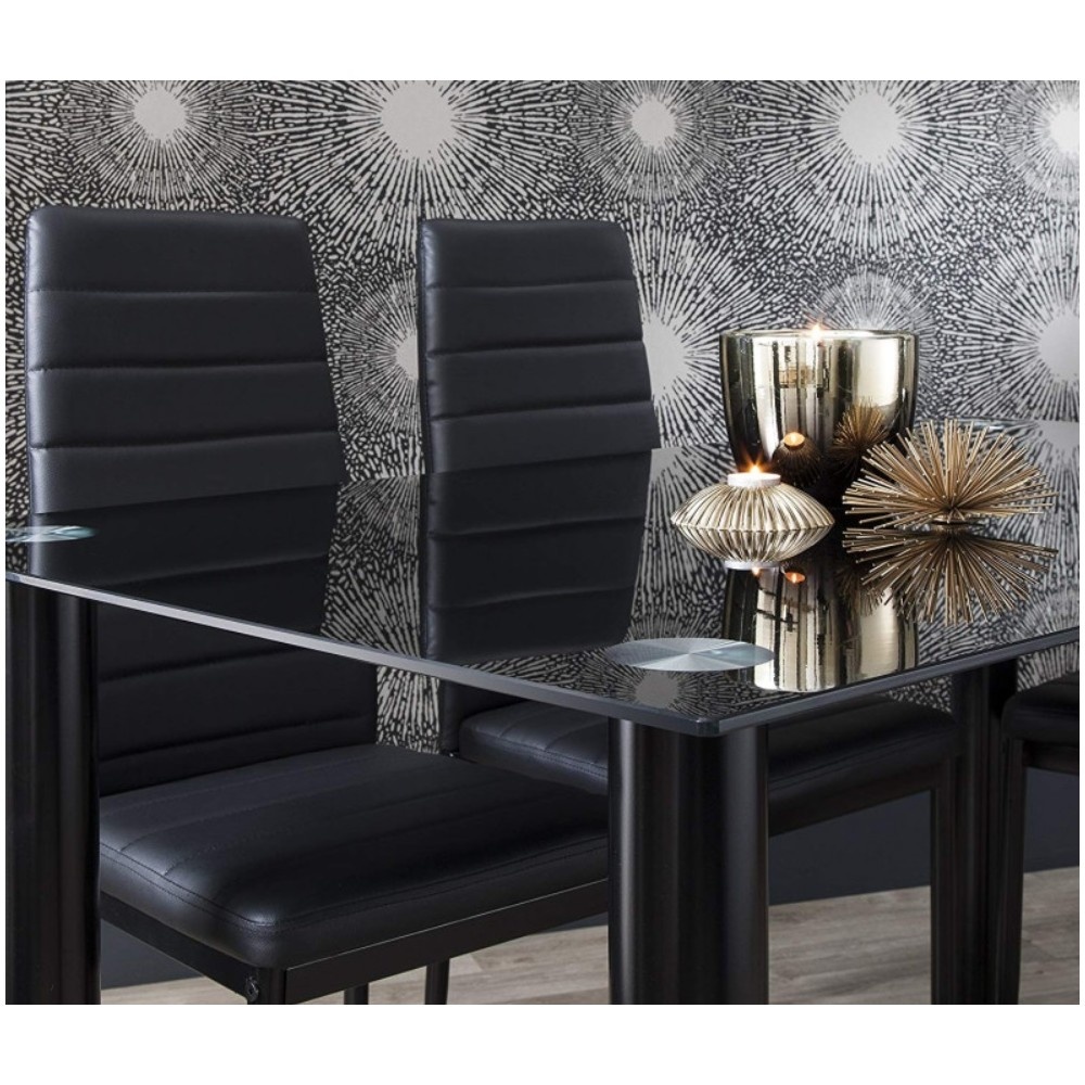 Ensemble table à manger + 6 chaises - plateau en verre trempé noir - pieds PVC noir - Chaise assise et dossier en similicuir noir - pieds métal laqué noir - Dimensions (LwPxH) Table :140x80x75cm - Chaise : 42x43x96cm - Idéal pour vos repas de famille