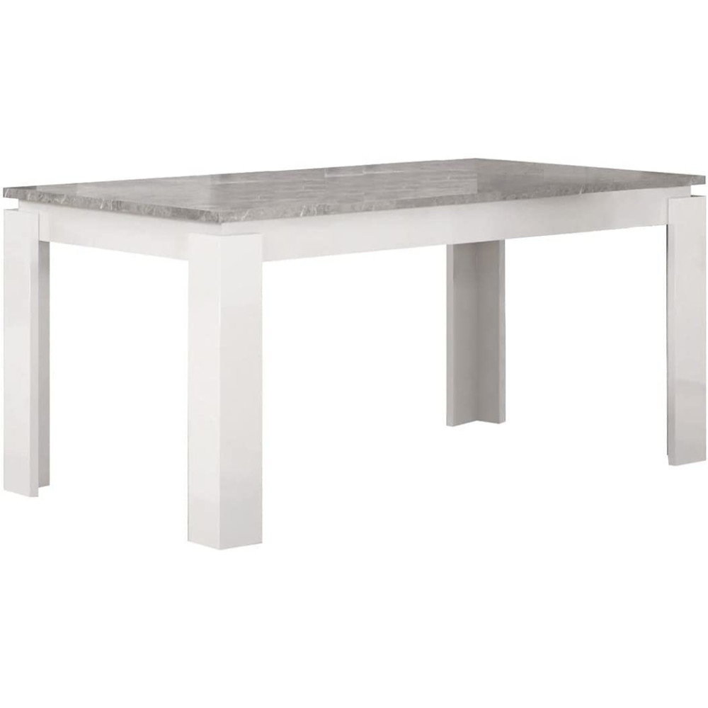 Table à manger Vivaldi de dimensions 160x90x77 cm - S'adapte parfaitement dans un intérieur lumineux - Structure en panneaux de particules mélaminés coloris blanc et gris marbre clair verni polyester  finition brillante - Forme rectangulaire qui bénéficie d'au moins 4 places assises - Nettoyage simplifié (juste un chiffon humide d'eau).