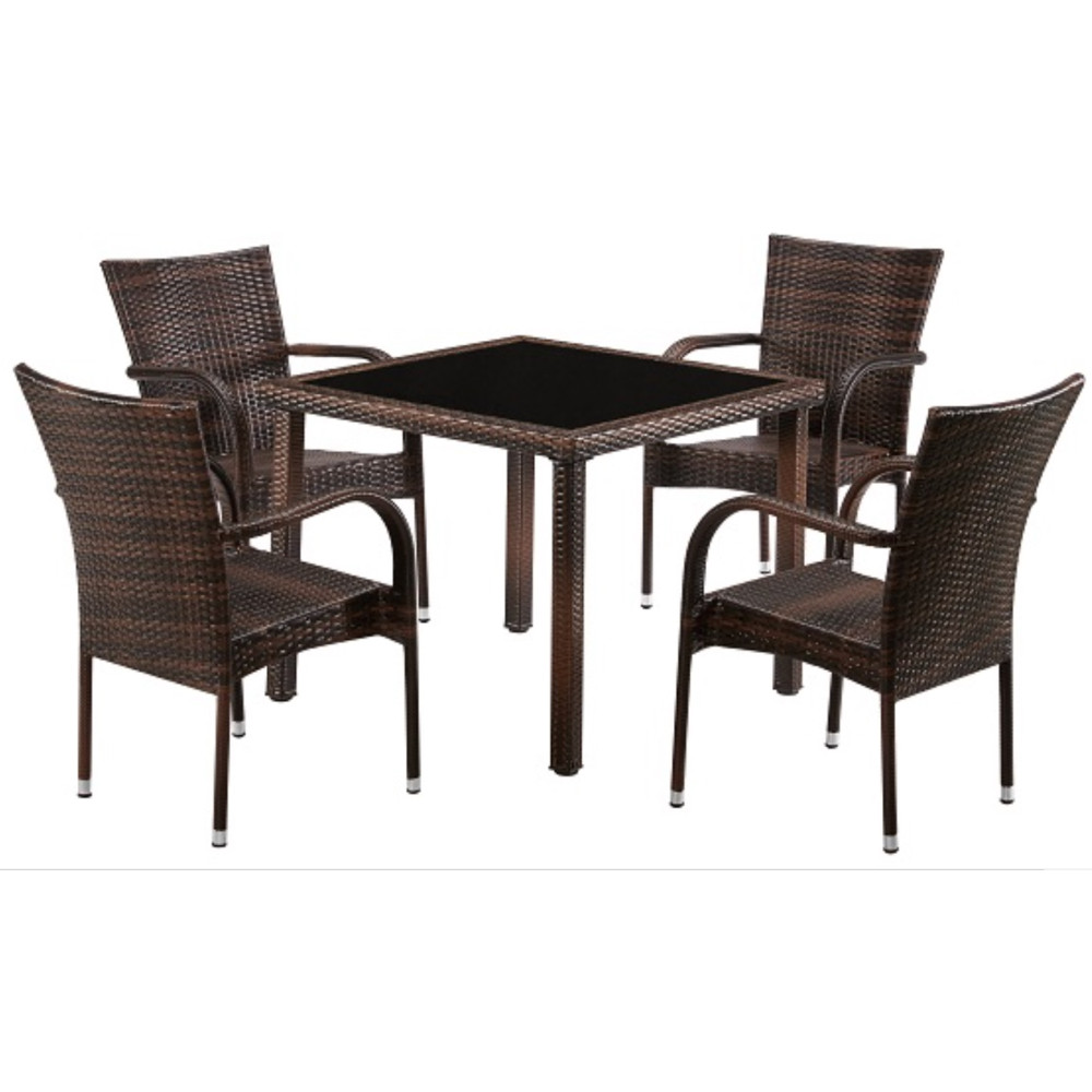 Ensemble une table et 4 chaises pour extérieur, dimensions : 90 × 90 × 72 cm, coloris: noir et marron.