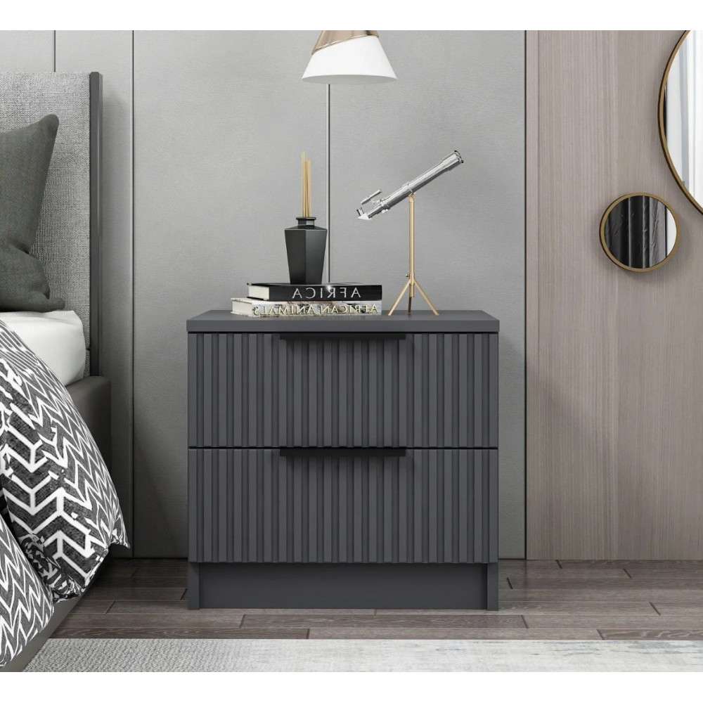 Table de chevet Lux composé de 2 tiroirs - Dimensions : 47x50x40cm, coloris : gris anthracite.
