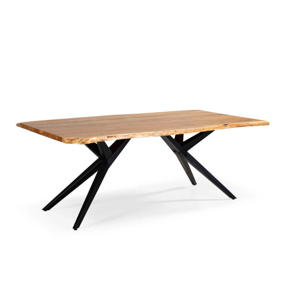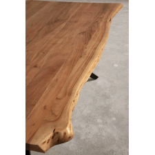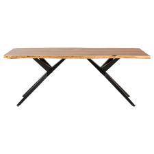 Table à manger 16245 - En bois d'acacia massif et piétement en métal - Le charme du bois massif - Bois traité et tropicalisé - Ligne épurée - Qualité de fabrication - Dimensions: 76X200X100cm.
