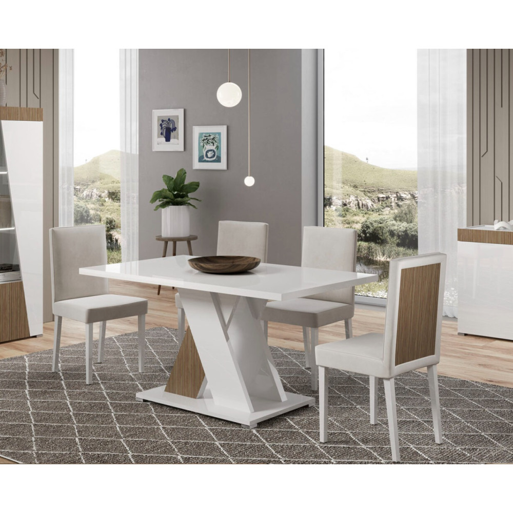 Table ETNA 160x90cm Laquée Blanc Décor Bois avec Pied Central en X - Elle dispose d'un pied central géométrique au décor tasseaux de bois qui apporte style et originalité - Cette grande table vous permettra d'accueillir sereinement tous vos convives - Structure en panneaux de particules écologiques E1 30mm - Pieds plastique H20mm sous la base - Finition : laqué brillant - Dimensions : 160 x 90 x H78cm - les chaises ne sont pas inclus.