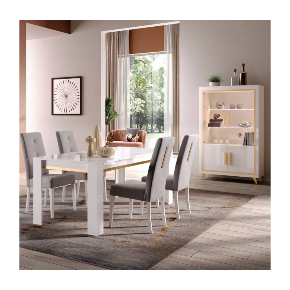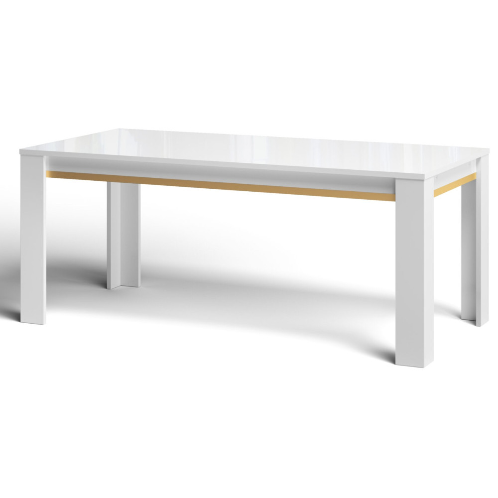 TABLE A MANGER GOLD 160X90 BLANC LAQUE ET DORE