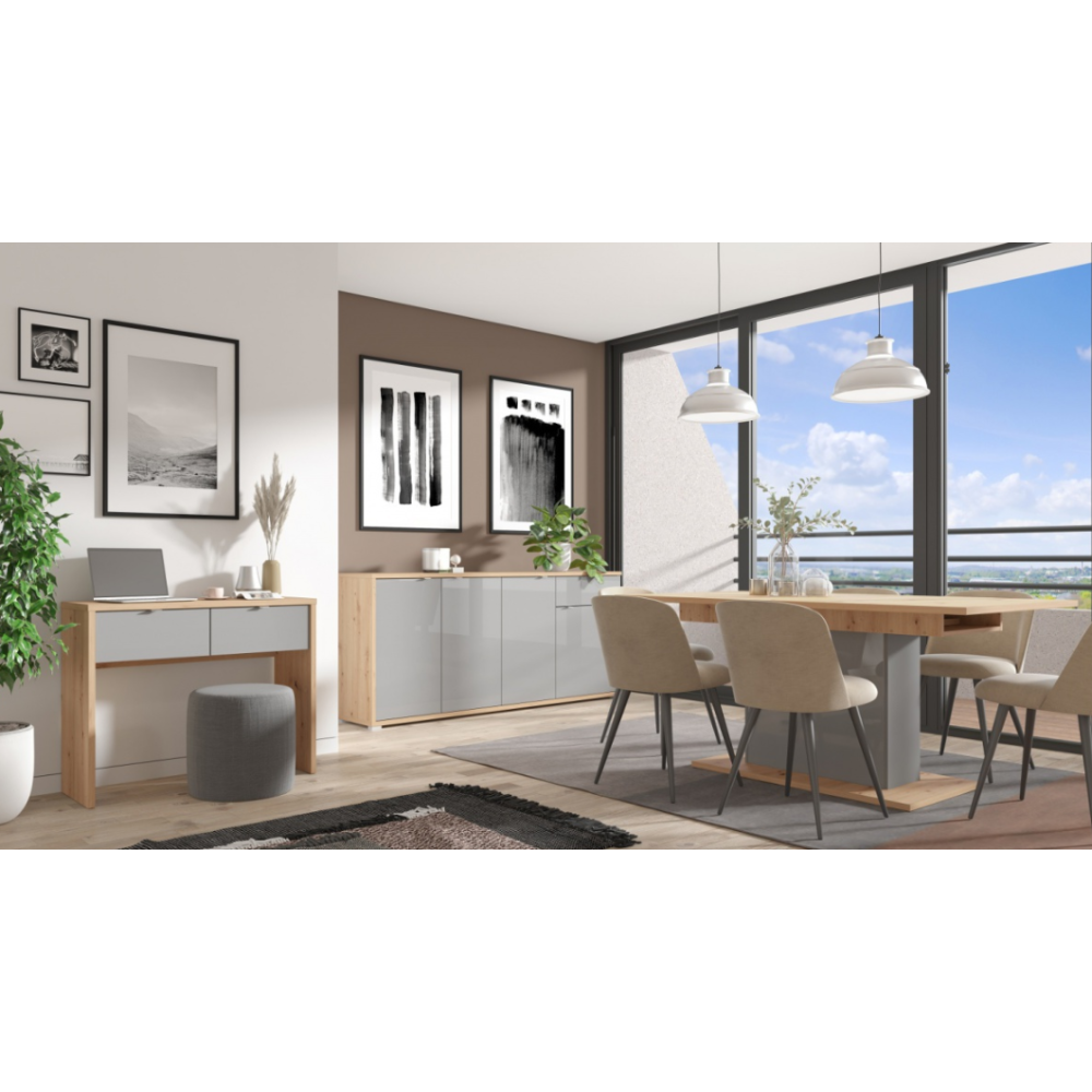 TABLE A MANGER RALLONGE ANDORA DECOR CHENE ET GRIS