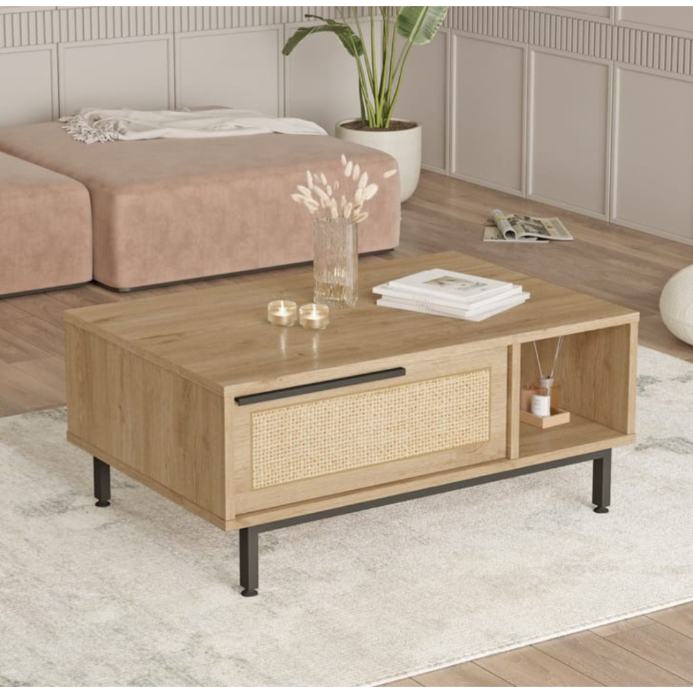 MEUBLE TV ON1-SU BOIS ET ROTIN