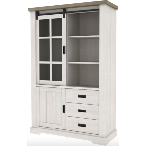 Vitrine GEORGETOWN - Structure panneau particules, mdf recouvert de papier coloris chêne blanchi / noyer clair - Structure MDF de très bonne qualité - Fabriqué en Indonésie - Dimensions: 119,8x44x180cm.