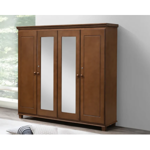 Armoire de rangement Marvin fabriquée en bois d’hévéa massif - Intègre un placage en bois et affiche des finitions nettes - Propose un volume de rangement optimal réparti sur 5 étagères internes - Dispose également d’un plateau supérieur exploitable pour poser de grands accessoires comme les valises - Embarque 2 miroirs au niveau des battants centraux et des poignées discrètes qui facilitent l’ouverture et la fermeture de l’armoire - Mensurations de l’armoire : 180 cm de large, 180 cm de haut et 54 cm de profondeur - Montée sur 4 pattes fabriquées en bois solide assurant la stabilité du meuble en tout temps.