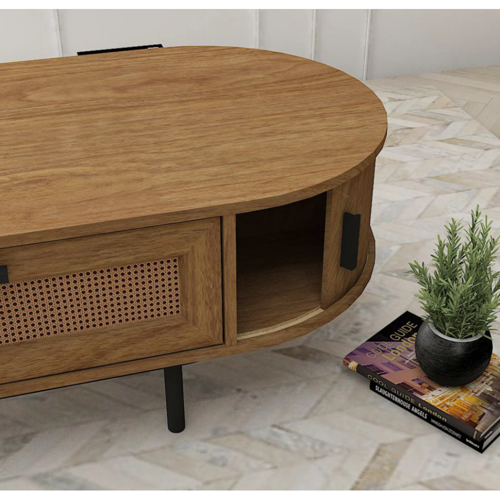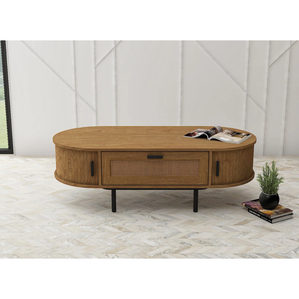 Table basse Walton LV55 CFTSS14MP-SMO - Dotée d’un large plateau supérieur - Embarque 3 tiroirs dont 1 au centre et 2 latéraux coulissants - Dimensions de la table basse : 1200 cm de long, 550 cm de large et 393 cm de haut - Montée sur un quatuor de pattes fines de couleur noire - Présente un design vintage affichant une grille à l’avant du tiroir central - Propose une facilité d’utilisation grâce à ses poignées de couleur noire qui assurent une ouverture et une fermeture aisées des tiroirs.