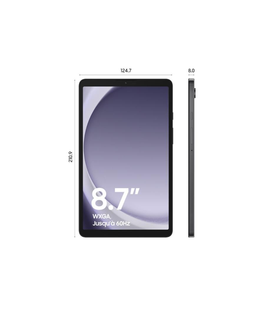 Samsung Galaxy Tab A9 5G - Taille de l'écran: 22,1 cm (8.7"), Résolution de l'écran: 800 x 1340 pixels, Technologie d'affichage: LCD. Capacité de stockage interne: 128 Go. Fréquence du processeur: 2,2 GHz, Famille de processeur: Mediatek. Mémoire interne: 8 Go. Résolution de la caméra arrière (numerique): 8 MP, Type de caméra arrière: Caméra unique, Résolution de la caméra avant (numerique): 2 MP, Caméra avant. Norme Wi-Fi: Wi-Fi 5 (802.11ac). Poids: 329 g. Système d'exploitation installé: Android 13. Couleur du produit: Graphite