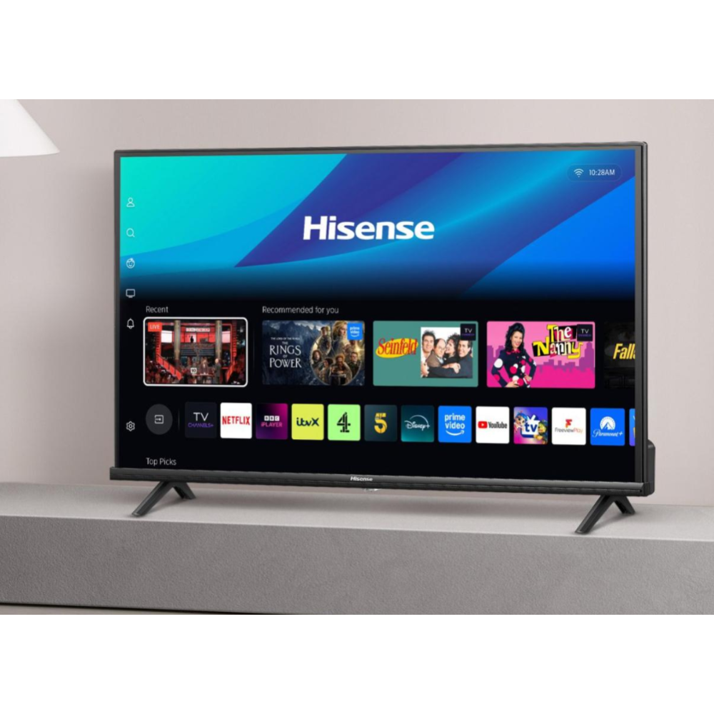 Le téléviseur HISENSE 40A5Q propose une diagonale de 100 cm (40″) avec une résolution Full HD (1920 × 1080) et une dalle QLED pour des couleurs éclatantes. Son contraste est de l’ordre de 5 000:1 avec une luminosité moyenne de 230 cd/m². Il dispose de 2 ports HDMI, 1 port USB, Wi-Fi intégré et Ethernet, et est compatible avec les normes DVB-T/T2, DVB-C, DVB-S/S2. Le système d’exploitation VIDAA donne accès à Netflix, YouTube, Prime Video, etc. Côté audio, il offre une puissance de 16 W (2 × 8 W) avec compatibilité Dolby Atmos. La consommation électrique maximale atteint 74 W, et la classe d’efficacité énergétique est F en mode SDR, G en mode HDR. Son design fin, cadre discret et compatibilité VESA 200 × 200 mm facilitent le montage mural.
