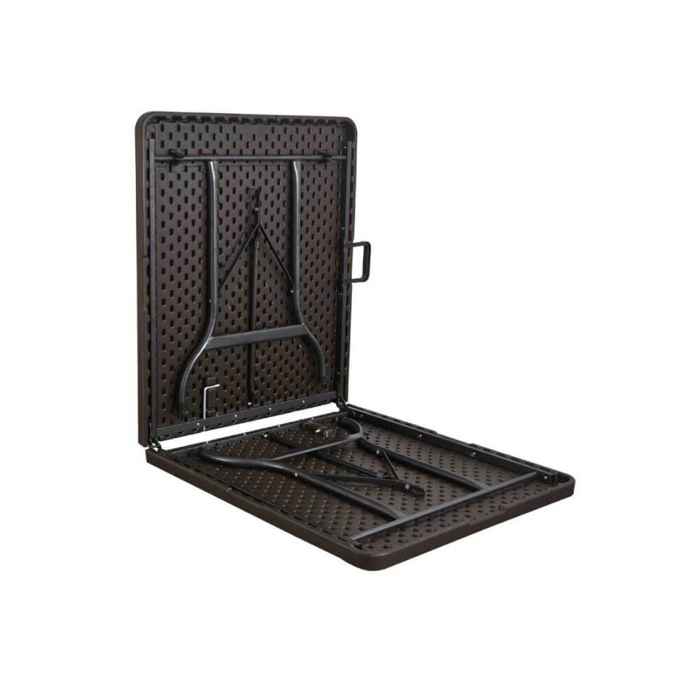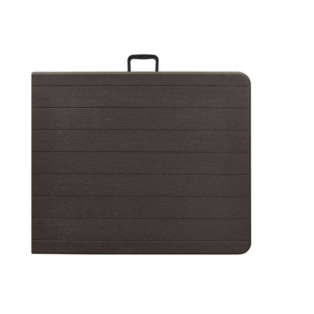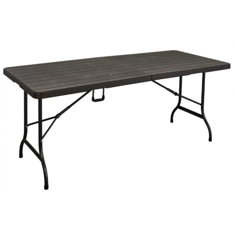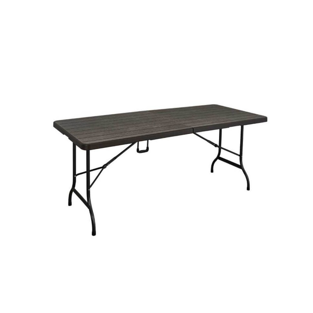 Table pliante imitation bois pour l'extérieur ou l'intérieur ! Pliante et facilement transportable. Pour vos réceptions, repas en famille...parfaite en mobilier d'appoint. Ne prend pas de place une fois pliée. Idéal en table d'appoint pour vos réceptions. Dimensions : l. 180 x l. 75 x h. 72 cm • fermée : l. 90 x l. 75 x p. 8,6 cm. Matière : dessus en hdpe 4,3 mm, tubes en métal 25 mm et embouts de protection en caoutchouc. Poids : 3,8 kg environ. Coloris : marron. Résistante à l'eau. Protection uv 3%. Imitation lattes en bois. 8 places. Pliante. Avec poignée de transport.