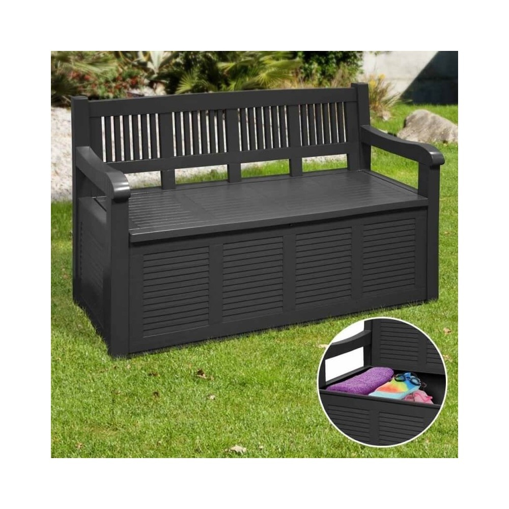 Banc coffre de jardin gris en plastique, le rangement malin pour l'intérieur comme pour l'extérieur. Rangement malin 2 en 1, il offre une assise confortable et un stockage idéal pour vos affaires qui seront protégées des intempéries, si vous le placez en extérieur. Sa capacité de 249 litres permet de stocker un grand nombre d'objets. Esthétique et pratique, ce banc de coloris gris aura toute sa place dans votre jardin ou sur votre terrasse . Dimensions : l. 130 x l. 60 x h. 65 cm • assise : l. 130 x l. 60 x h. 45 cm • intérieur du coffre : l. 120 x l. 50 x h. 37 cm. Matière : polypropylène. Poids : 15 kg environ. Coloris : gris. Capacité : 249l. Poids maximum supporté par le banc : 120 kg.