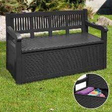 Banc coffre de jardin gris en plastique, le rangement malin pour l'intérieur comme pour l'extérieur.