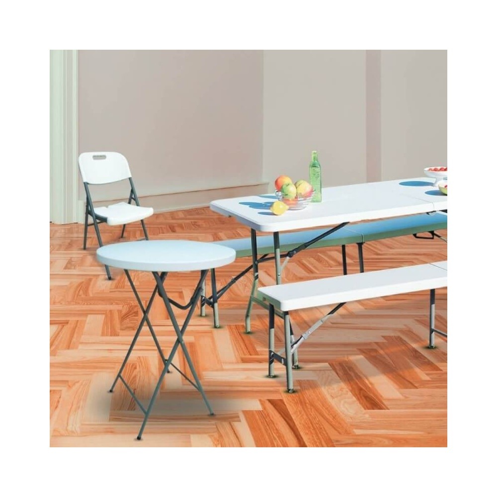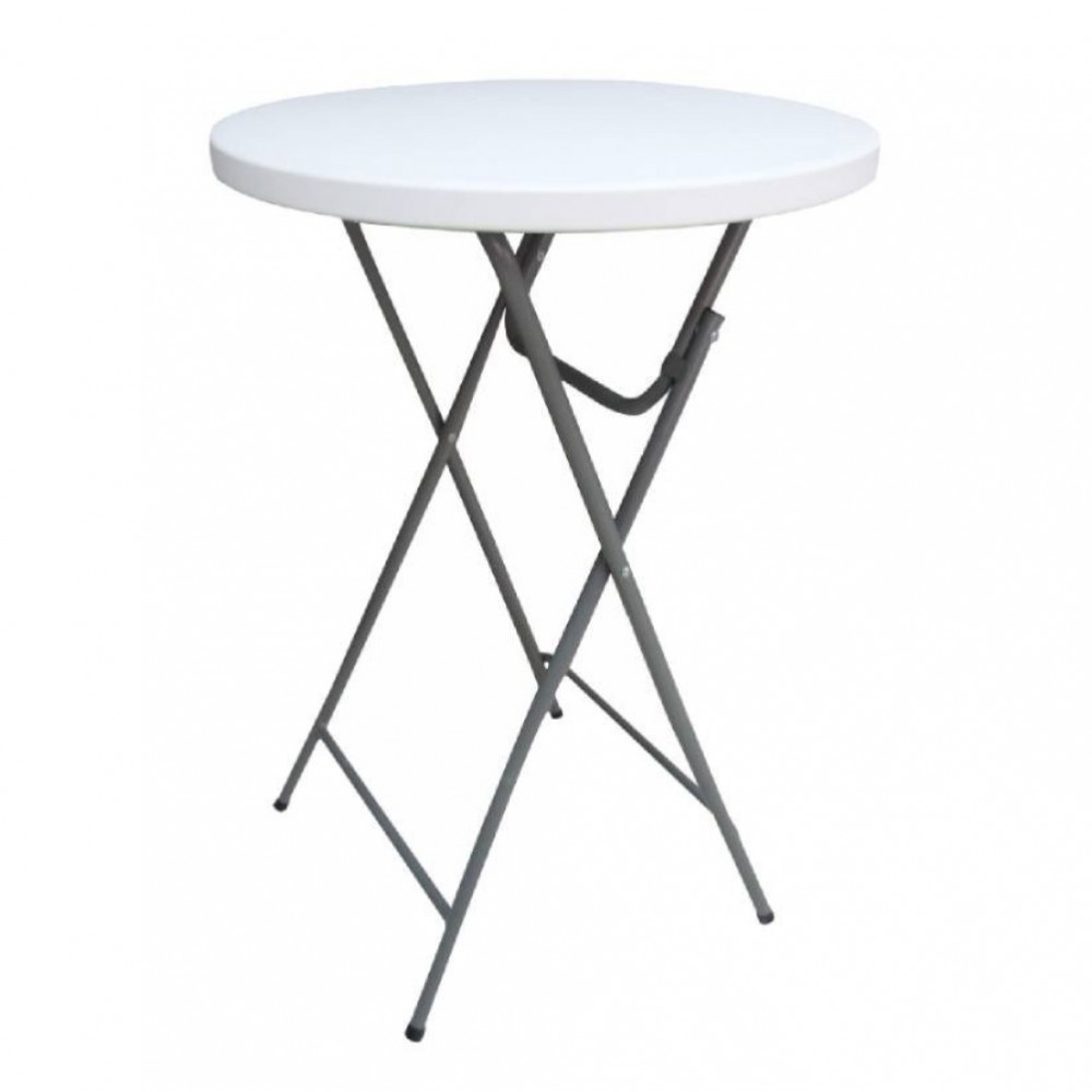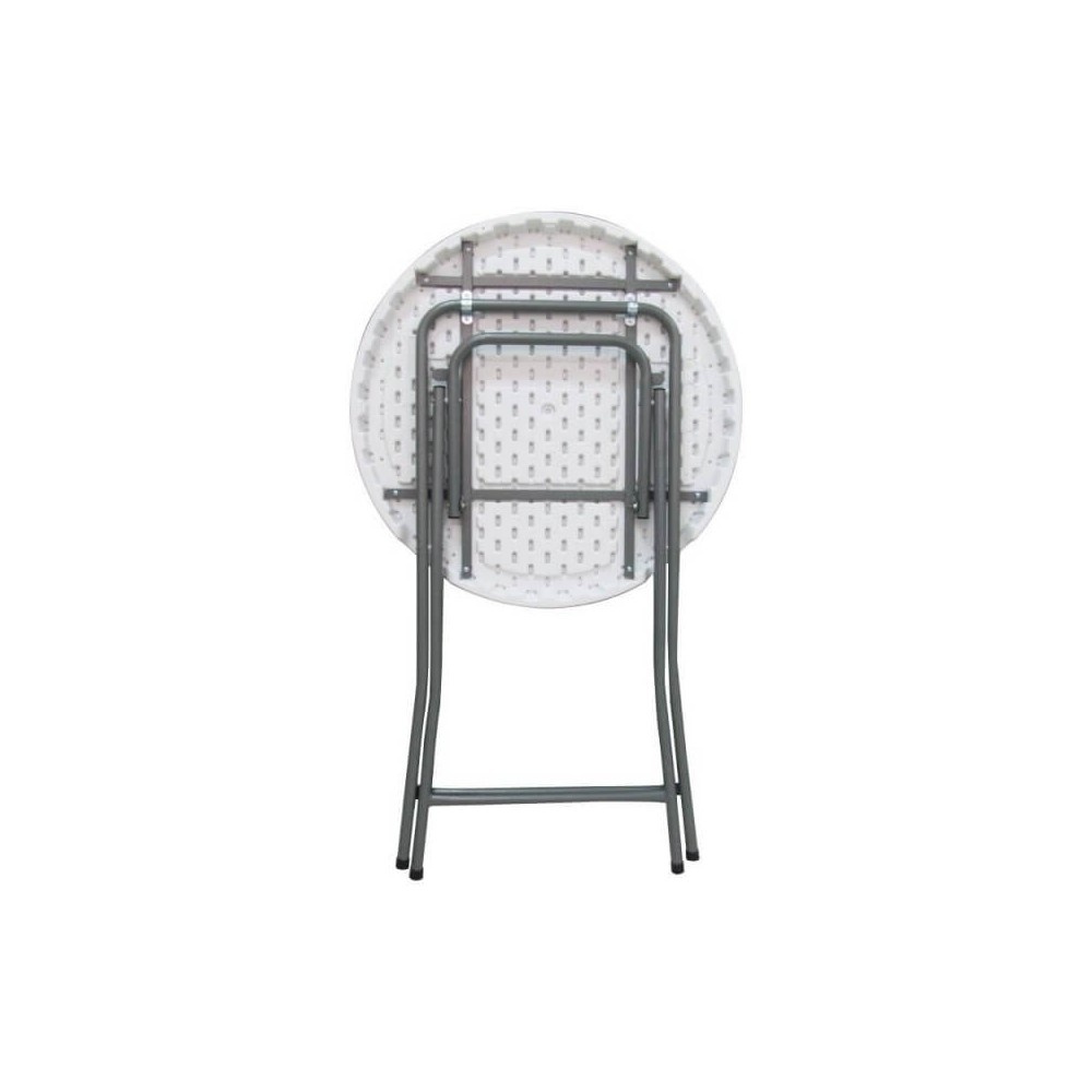 Une table qui prend peu de place et se range facilement ! Pour vos réceptions, vos repas en famille la table mange-debout ne prend pas de place une fois pliée. Elle se transporte facilement où vous le souhaitez. D'une grande stabilité et très robuste, il vous sera facile de l'installer et de l'enlever pour la ranger dans un garage ou un abri de jardin. Dimensions : h. 110 x ø. 81 cm. Dim. pliée : l. 81 x h. 135,5 x p. 5 cm. Coloris : blanc. Matière : plastique hdpe 45 mm et tubes en métal Ø 25 mm. Poids : 9,5 kg. Pliante. Résistante à l'eau. Protection anti uv 3%.