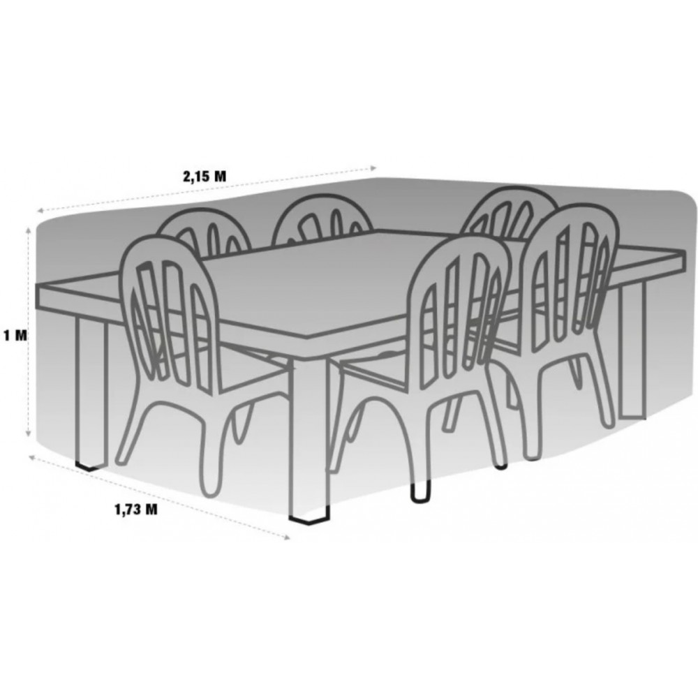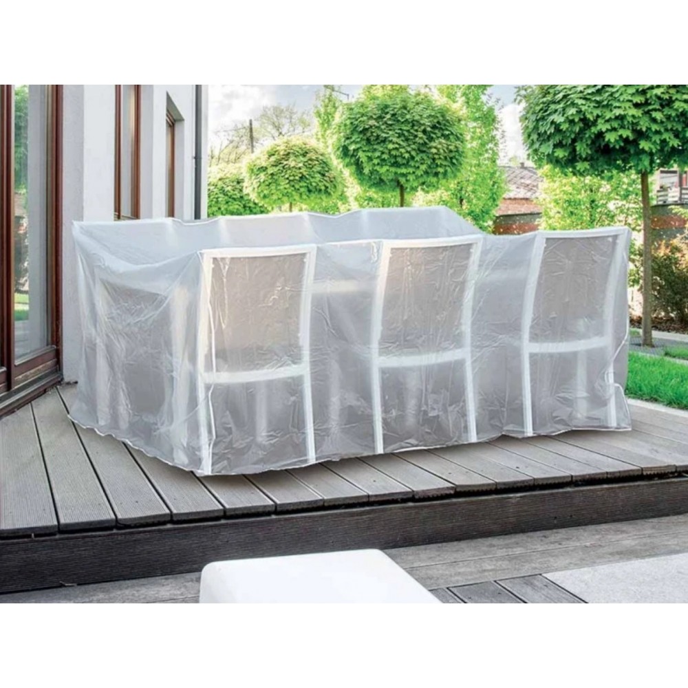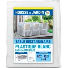 Housse de protection pour salon de jardin. La housse de protection en plastique protège efficacement votre mobilier de jardin (table et chaises comprises) de la pluie et de la poussière. Idéale pour couvrir le mobilier de jardin en été, la nuit, à l'extérieur et en hiver dans le garage. Informations techniques. Matière : plastique. Dimensions : - longueur : 215 cm - largeur : 173 cm - hauteur : 100 cm. Coloris : blanc.