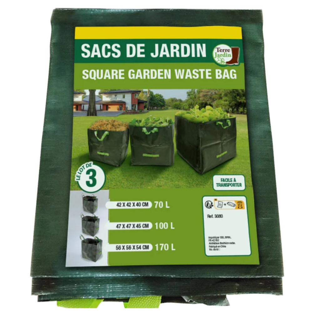 Grâce à ses 3 formats différents, stockez vos déchets verts et ménagers comme bon vous semble. Facile à transporter et à manipuler. De forme carrée, ils se rangent facilement dans votre coffre ou votre remorque.