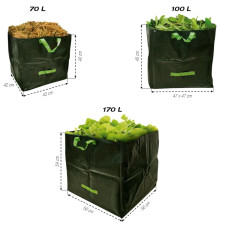 Détails dimensions : 70L : 42 x 42 x 40 cm. - 100L : 47 x 47 x 45 cm. - 170L : 56 x 56 x 54 cm. Grammage / Qualité : 200 g/m². Lot de 3 sacs munis de 3 poignées chacun.