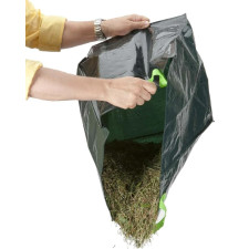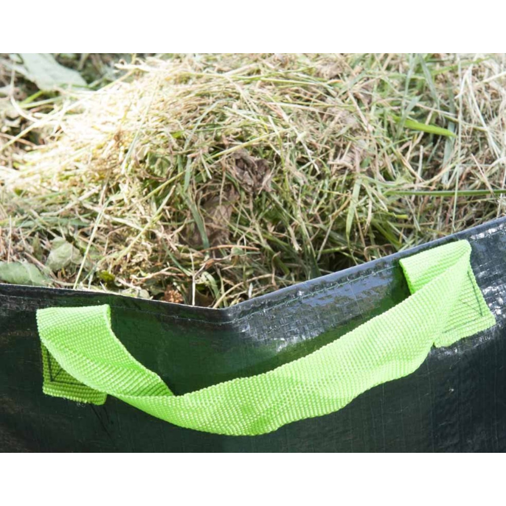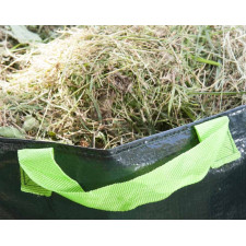 Sac autoportant 70 litres. Dimensions : Ø 40 x h. 60 cm. Matière : polyéthylène 220 g/m². Poids : 0,2 kg environ. Couleur : vert. Contenance : 70 litres. 3 poignées.