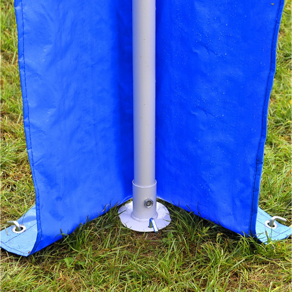 Très résistant - Idéal pour toutes vos réception - Coupe-vent. Protège du soleil - Pour tente pliante pro 3 x 6 M - Coloris : Bleu - Détails dimensions : Murs fenêtres : L. 6 m - Murs simple et porte : L. 3 m - Détails matière : polyester enduit PVC - Grammage / Qualité : polyester 250 g/m² - Lot de 4 murs : 1 mur simple - 2 murs fenêtres - 1 mur avec porte - Les murs se fixent entre eux par un zip puis s’attachent à la structure par scratchs.