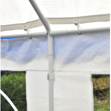 Pour toutes vos réceptions ce chapiteau de grandes dimensions s'adapte à toutes les situations (mariage, baptêmes, etc) - Livré avec ses 4 murs - En version ouvert ou fermé, il préserve la tranquillité de vos repas - Doté d'une toile imperméable - Structure en métal et toile en polyéthylène - Coloris blanc et bleu - Détails dimensions : - Tubes métal : E. 34 mm. Grammage bâche : 180 g/m². Couvre une surface de 24 m². Fenêtres cathédrale. Toile de rechange vendue séparément : réf. 72810.