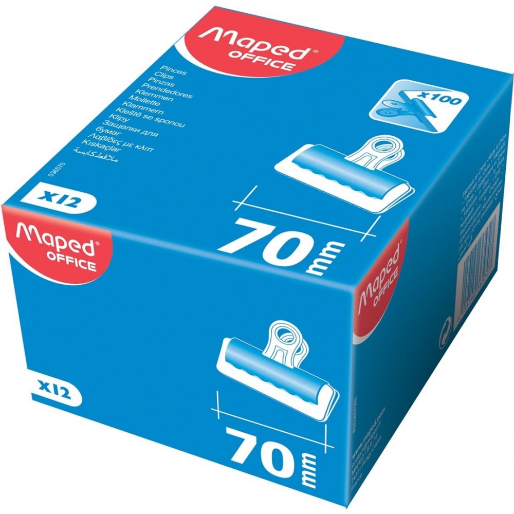 Boîte de 12 pinces à dessin largeur 70 mm, 12 mm d'ouverture soit environ 120 feuilles 80g/m².