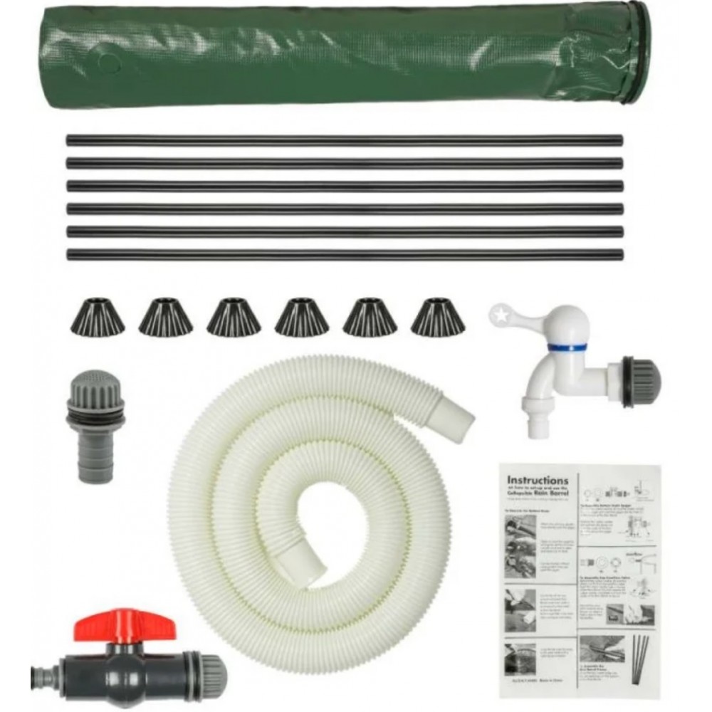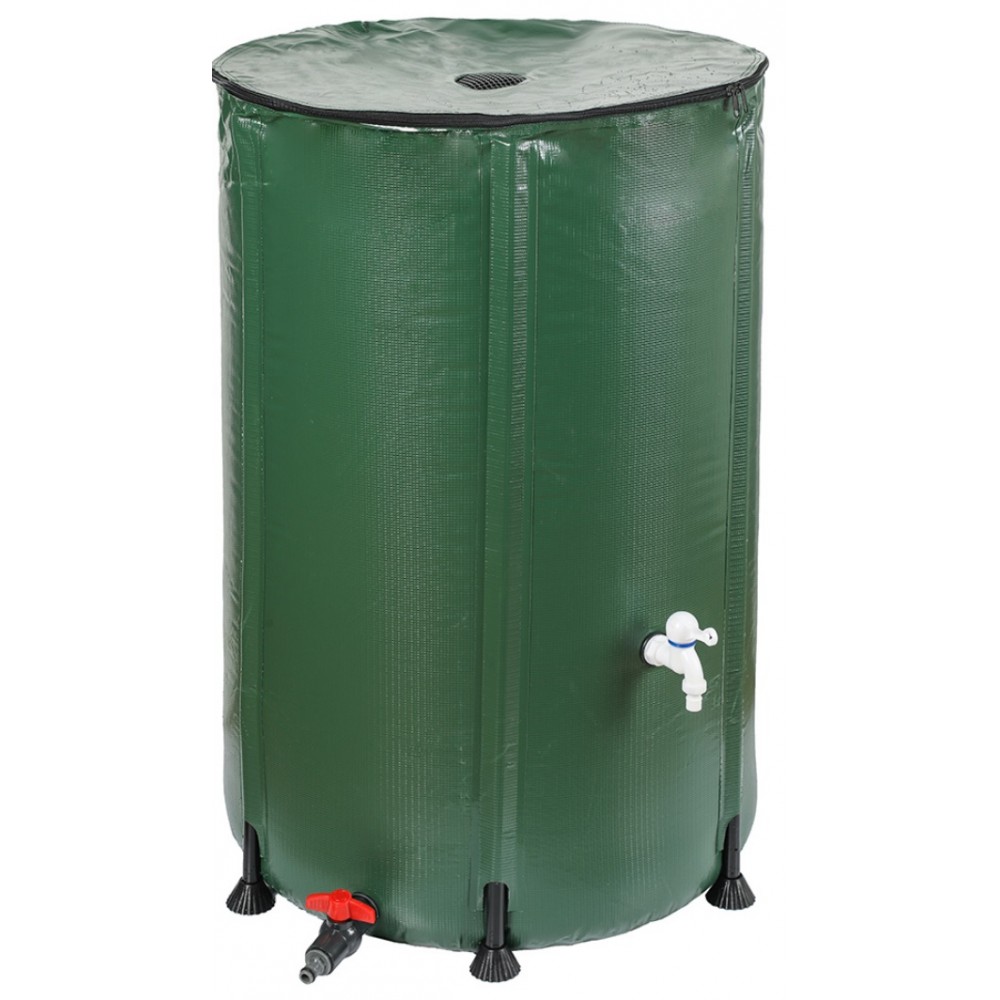 Économique et écologique, le réservoir eau de pluie pliable allège vos factures : plus besoin de gaspiller l'eau potable du robinet pour prendre soin de vos extérieurs ! Cette citerne souple eau de pluie en PVC est très résistante face à l’usure du temps et aux rayons du soleil. Récupérateur d’eau pluviale pliable 250l-dimensions : Ø 60 x h. 88 cm. Sortie robinet : Ø 19 mm. Matière : pvc, pp et abs poids : coloris : Vert. Contenance : 250 l. Contient : x1 bâche pour la cuve, x1 couvercle avec fermeture zippée, x2 sortie d’eau (robinet + branchement tuyau), x1 tuyau pour le trop-plein d’eau avec adaptateur, x6 pieds et barres de maintien.
