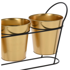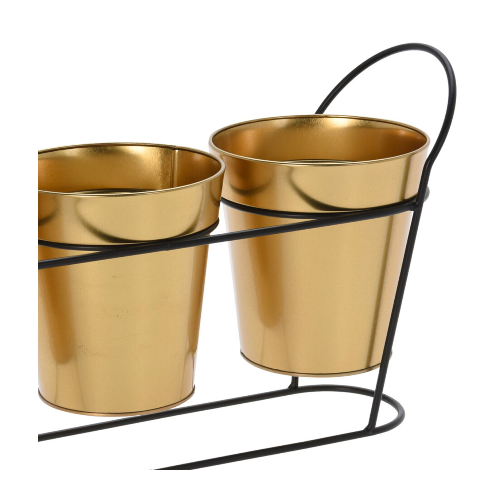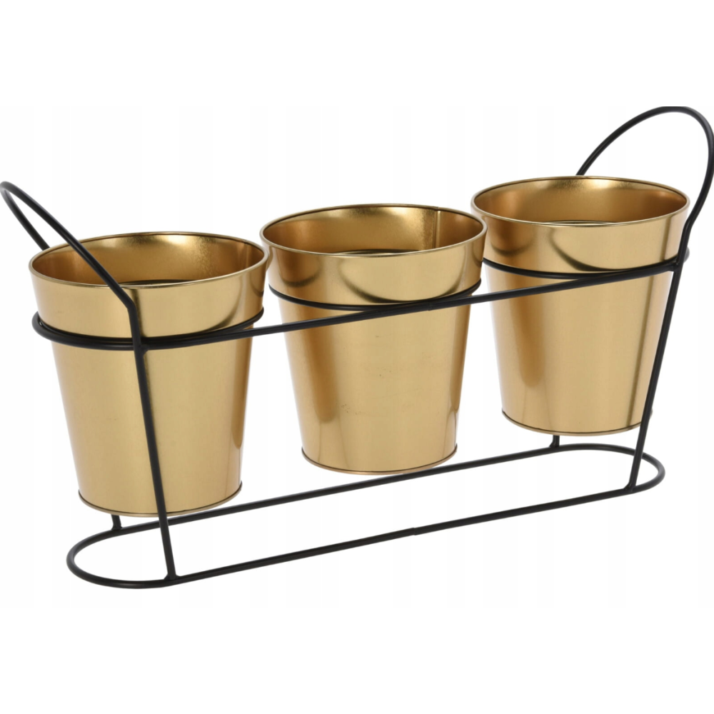 SET DE 3 POTS A PLANTES DORES AVEC SUPPORT METAL NOIR