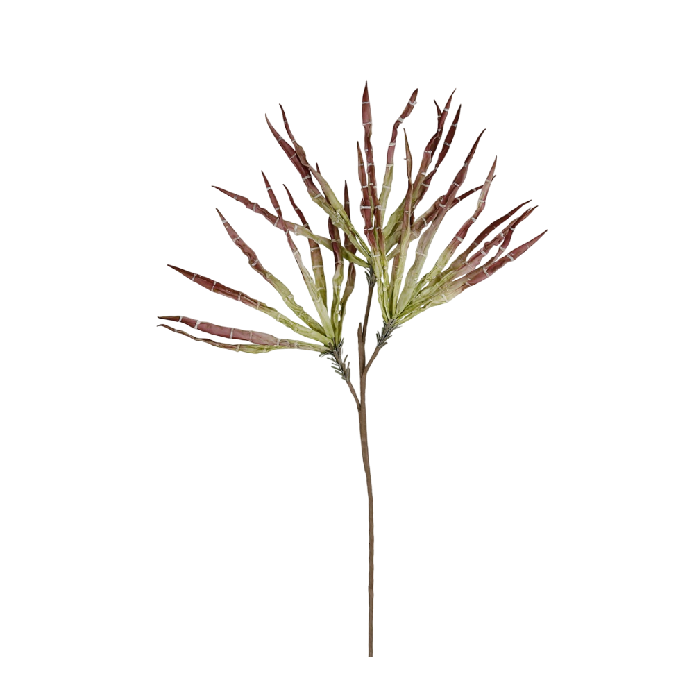 Cette fleur décorative apporte une touche exotique à votre intérieur. Ses feuilles fines et effilées aux tons vert olive et marron attirent le regard et s'intègrent parfaitement aux décorations modernes et bohèmes. Ses tiges flexibles sont faciles à modeler. Idéale pour les vases, les compositions florales ou comme décoration indépendante, elle constitue une alternative durable et sans entretien aux plantes naturelles. Apportez une touche tropicale à votre intérieur avec cette décoration saisissante. Dimensions: Hauteur 103 cm.