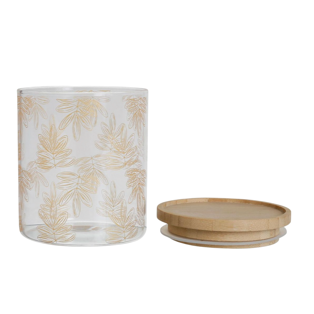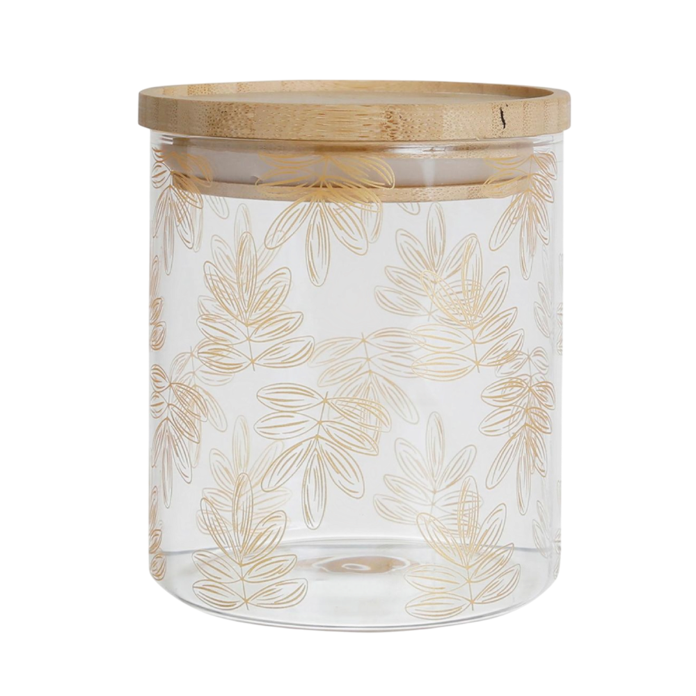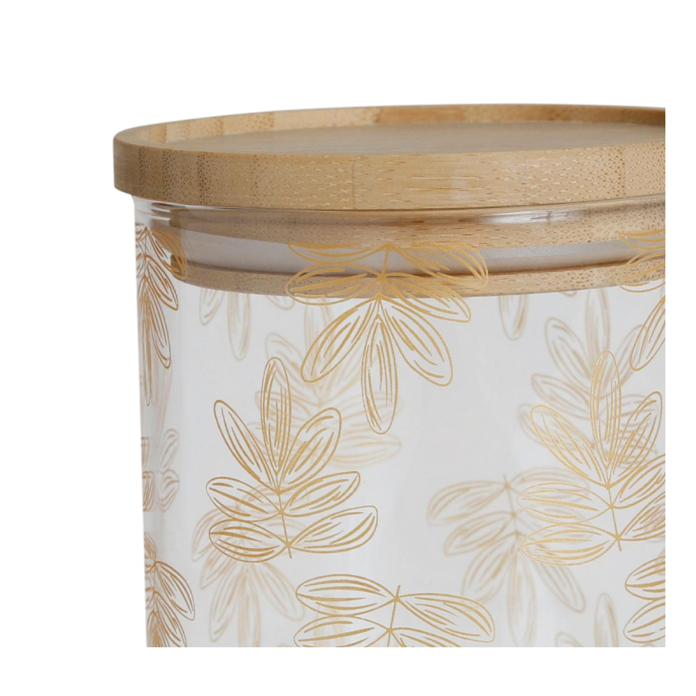 Alliez élégance et praticité avec ce magnifique pot Flaural doré. Conçu en verre transparent, il est orné de délicats motifs floraux dorés qui lui confèrent une touche raffinée et lumineuse. Son couvercle en bambou naturel apporte une note chaleureuse et écologique, tout en assurant une fermeture hermétique idéale pour la conservation de vos aliments secs, épices ou petits accessoires. Avec ses dimensions D9,5 x H21 cm, ce pot s’intègre harmonieusement dans toutes les cuisines ou espaces décoratifs, mêlant charme, modernité et fonctionnalité.